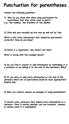 Punctuation And Parenthesis Worksheets Ks2 Teaching Resources